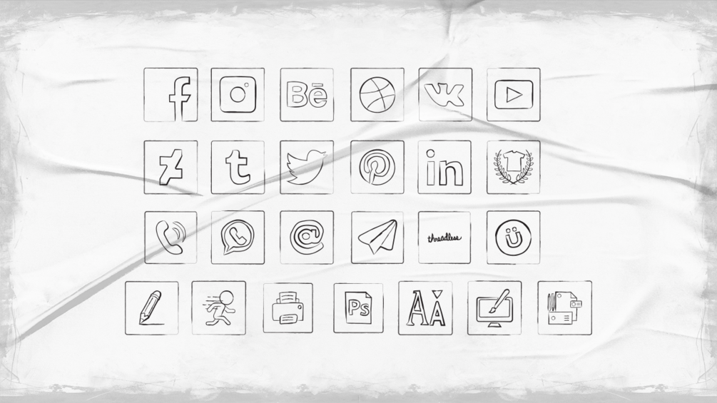like: facebook, instagram, behance, dribble, vk, youtube, deviantart, thumblr, twitter, pinterest, linkedin, teepublic, phone, whatsapp, email, telegram, threadless, redbubble, designbyhumans and couple more...